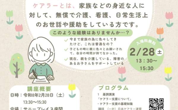 NEW 2026年1月23日イベント情報越山 地域福祉ネットワーク推進フォーラムを開催します!令和7年度 地域福祉ネットワーク推進フォーラムを開催します! 日時:令和8年2月28日(土)13:30~15:30 場所:サニープレイス座間3階多目的室 対象:座間市内在住在勤、福祉に関心のある方、親や子ども等、誰かを支 […]