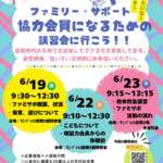 2026年4月9日 / 最終更新日 : 2026年4月9日 座間社協スタッフ イベント情報 ファミリー・サポート事業「協力会員になるための講習会」を開催します。 R8・6月 講習会 チラシ 座間市社会福祉協議会では、「子育てを応援して欲しい人」と「子育てを応援したい人」が、地域の中で育児の相互援助活動を行う会員登録制のファミリー・サポート事業に取り組んでいます。 このファミリー […]