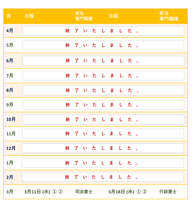 弁護士・司法書士・行政書士・社会福祉士・税理士による、専門職相談会を行います。
