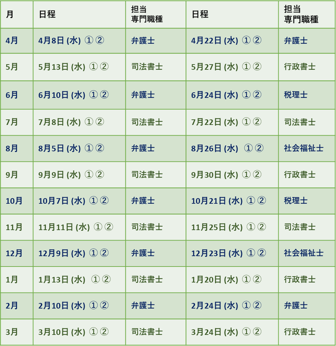 予約:事前予約制です。センター相談員がお話をうかがい、専門職相談会につなぎます。