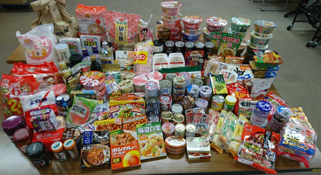 | ・お米(白米、玄米、アルファ米) ・パスタ、そうめんなどの乾麺 ・缶詰 ・レトルト食品、お茶漬け、インスタント食品 ・のり、ふりかけ ・調味料(醤油、食用油、味噌、ドレッシングなど) ・粉ミルク ・離乳食 ・お菓子 |