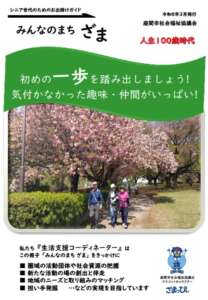 「近所の気軽に行ける場所を知りたい」「ちょっと困った時の相談先を知りたい」「地域で社会貢献活動をしたい」そんな方に活動を行っている団体や、相談先を紹介しています。高齢者のための地域再発見ガイド「みんなのまちざま」をご覧ください。(画像をクリックしてご覧いただけます)